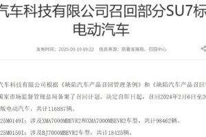 本周,新能源汽车市场有哪些大事发生? 因辅助驾驶存安全隐患,小米汽车召回超11万辆SU7 近日,国家市场监督管理总局发布公告,小米汽车科技有限公司根据《缺陷汽车...