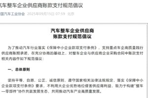 本周,国内外汽车行业有哪些大事发生? 中汽协发布供应商账款支付规范倡议 9月15日,中国汽车工业协会发布《汽车整车企业供应商账款支付规范倡议》,一汽、东风、长安...