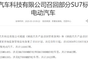近日,国家市场监督管理总局发布公告,小米汽车科技有限公司根据《缺陷汽车产品召回管理条例》和《缺陷汽车产品召回管理条例实施办法》的要求,已向该局备案召回计划,决定...