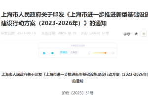 10月19日消息,上海市人民政府于近日印发了关于《上海市进一步推进新型基础设施建设行动方案(2023-2026年)》(以下简称“《方案》”)的通知,主要内容和保...
